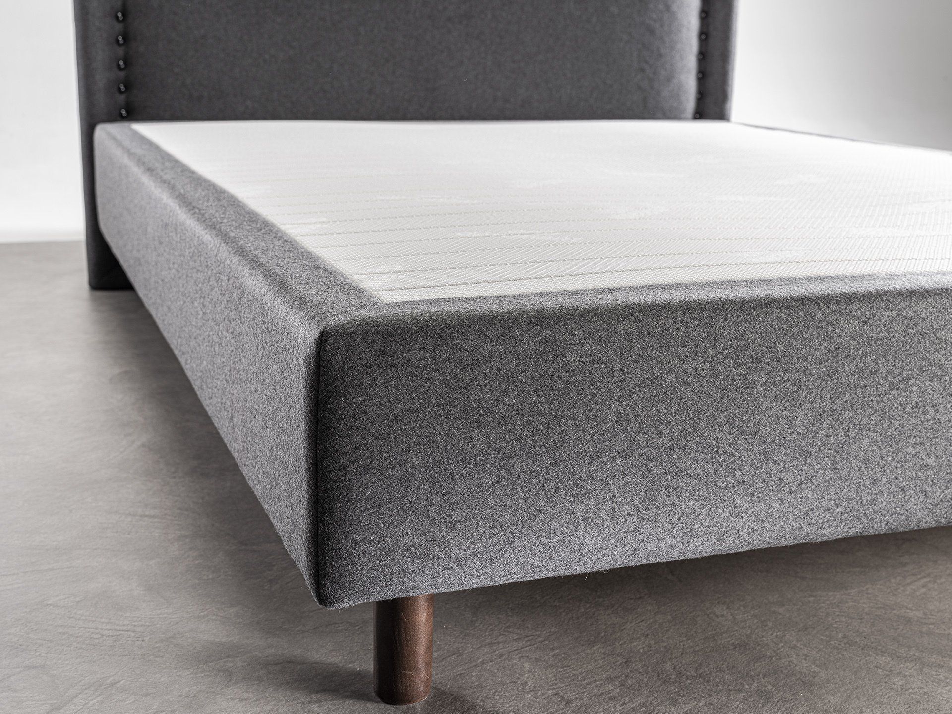 Valérido vous propose un sommier dans 10 dimensions avec choix de tissus pour réaliser le parementage habillage fixe du sommier qui se coordonne à la tête de lit.